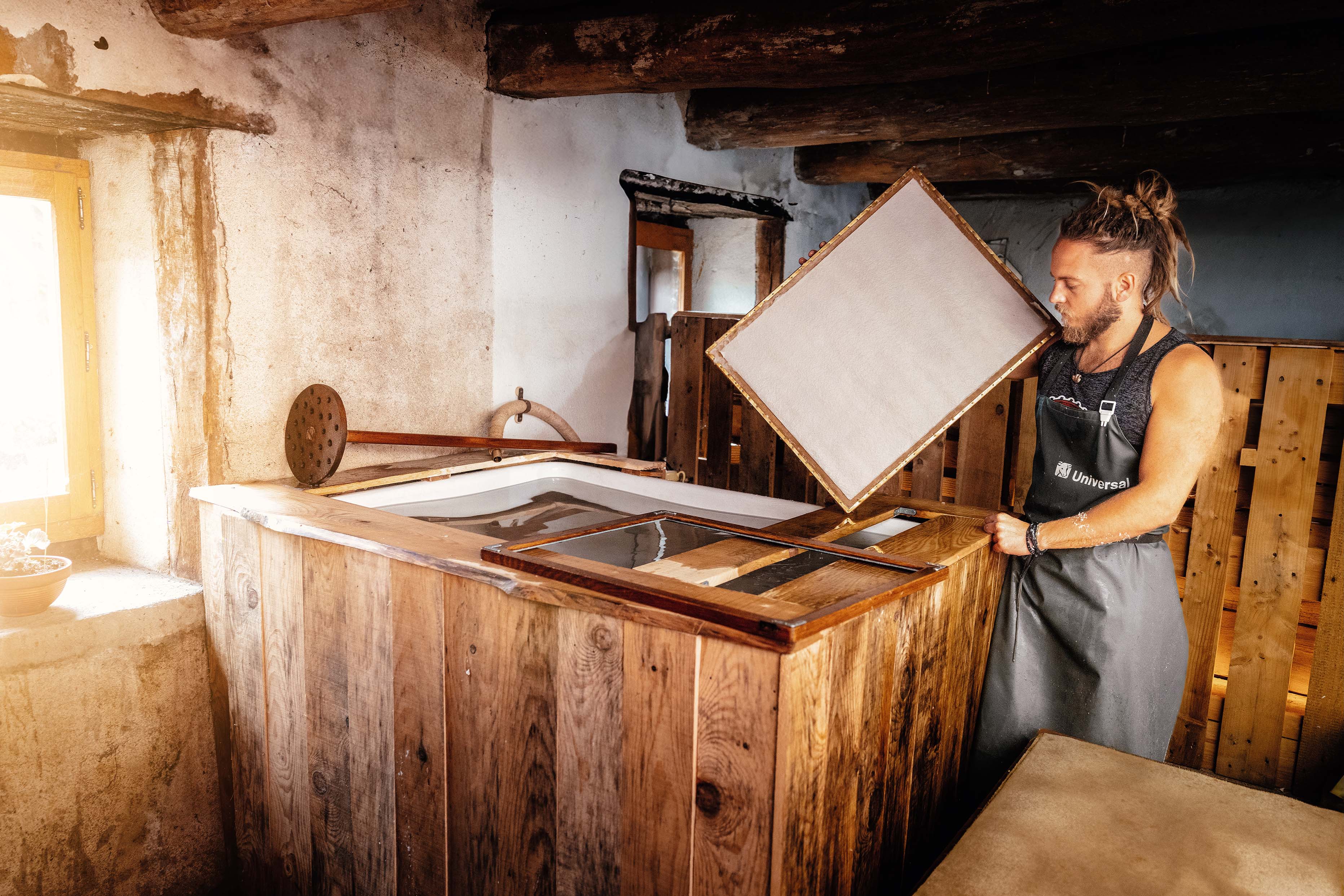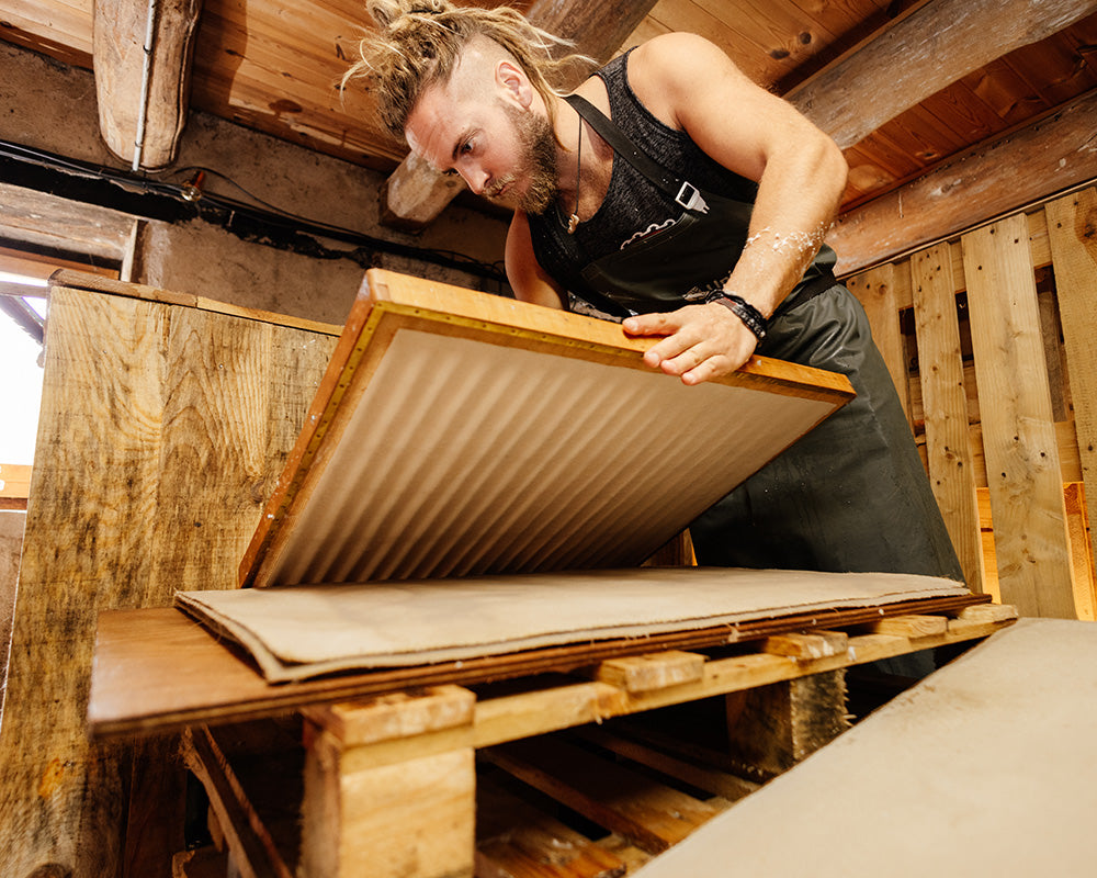 Nous fabriquons des papiers originaux en utilisant les gestes et le matériel d'autrefois.