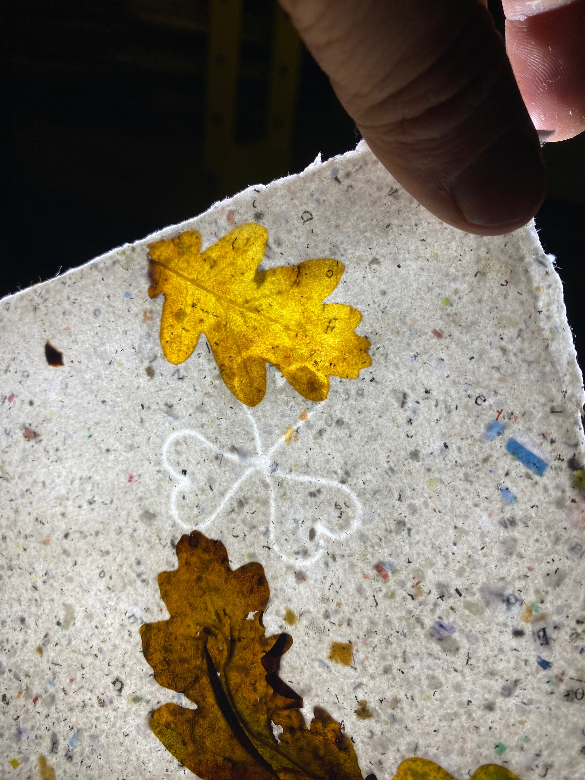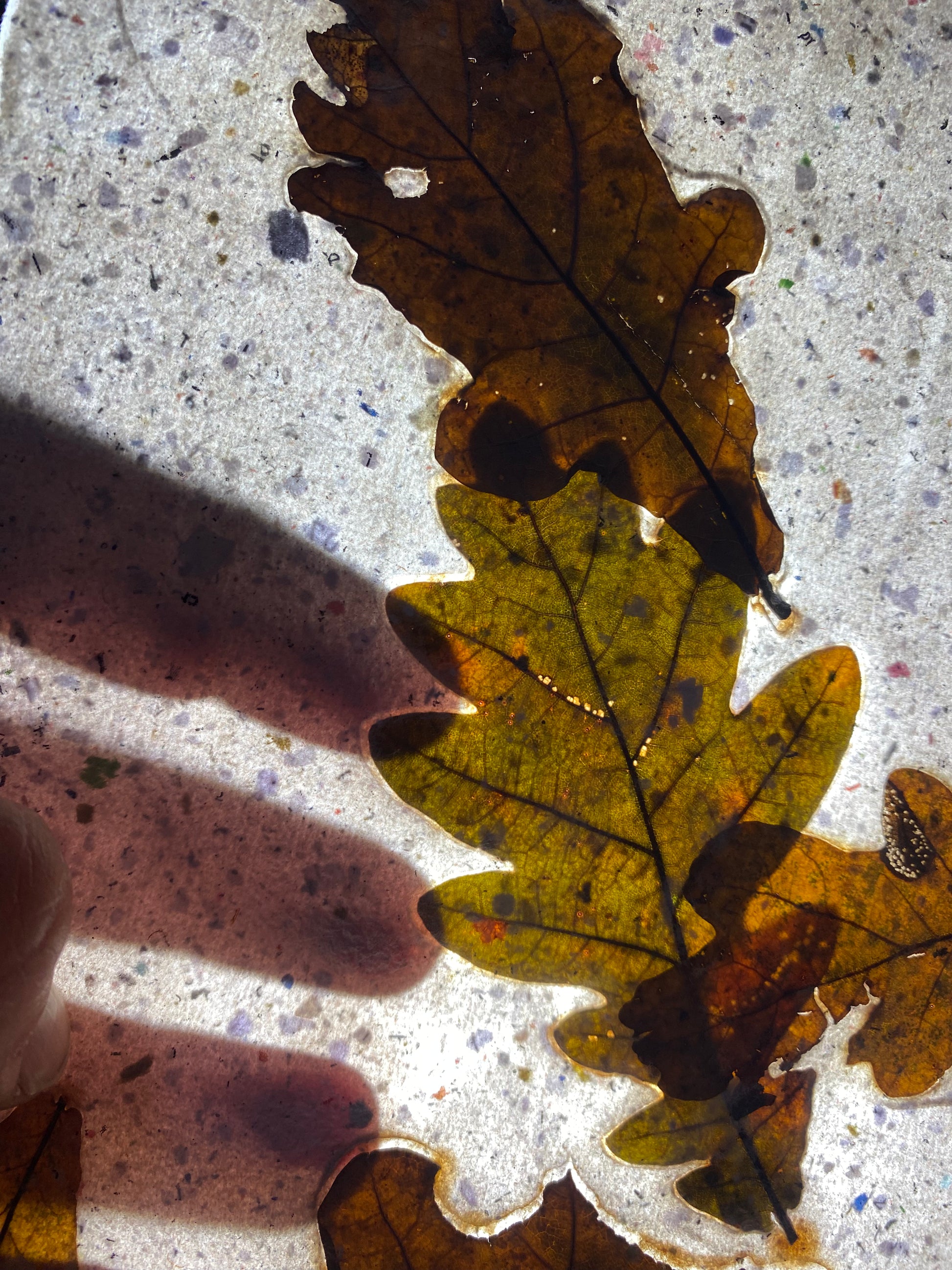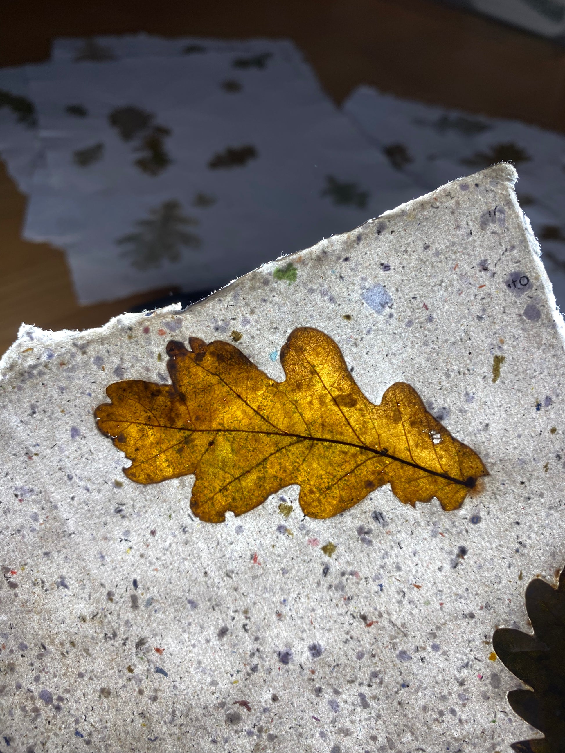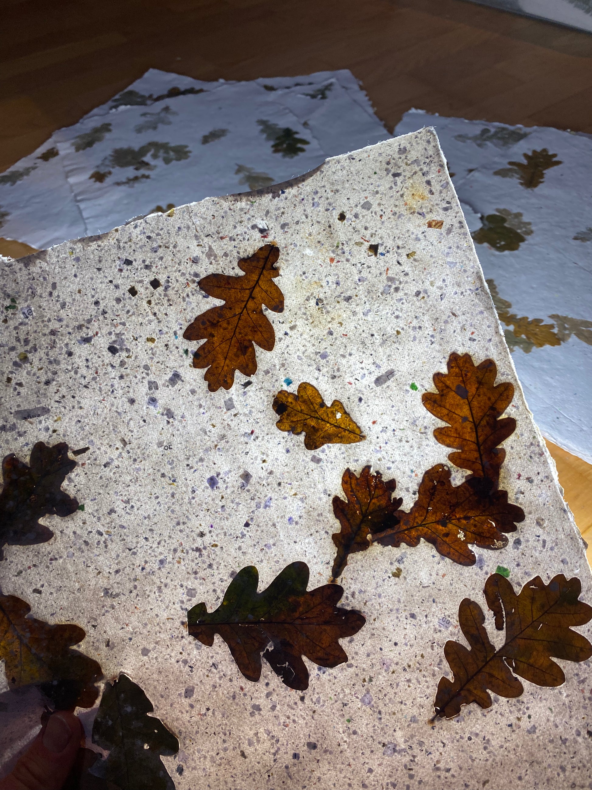 Création originale avec inclusion de feuilles de chêne.