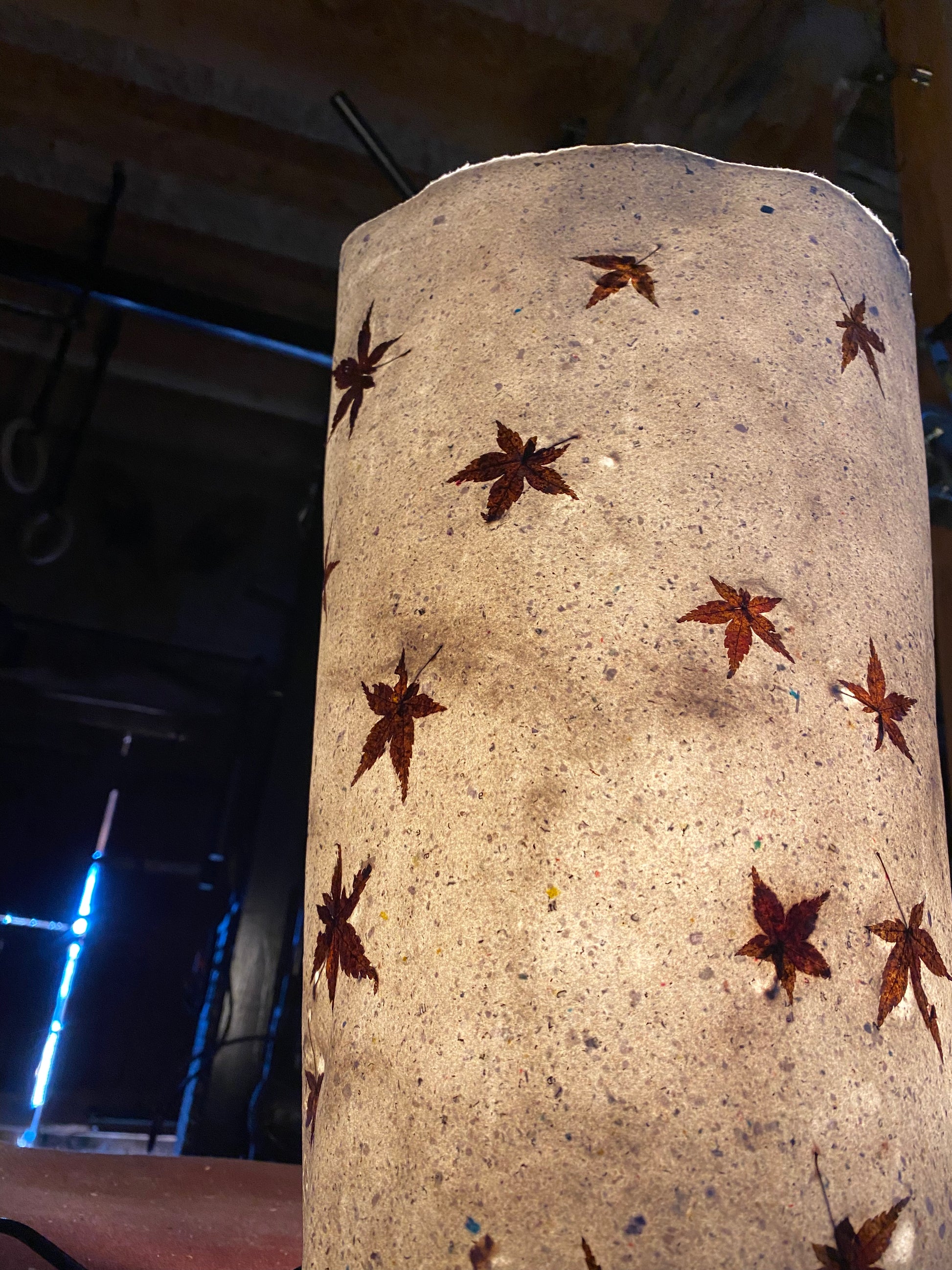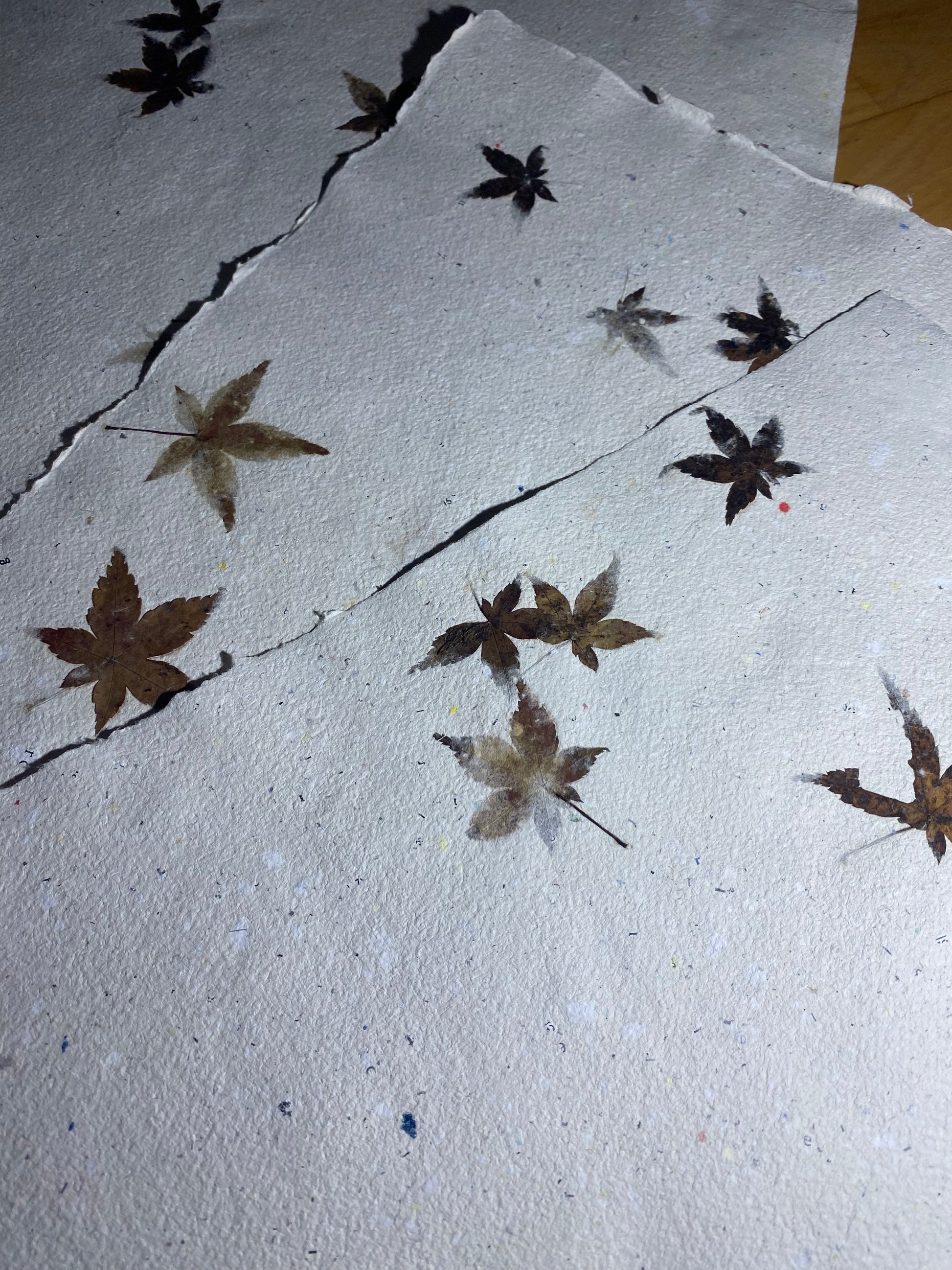 Création originale avec inclusion de feuilles d'érable palmé du Japon (Bonsaï)