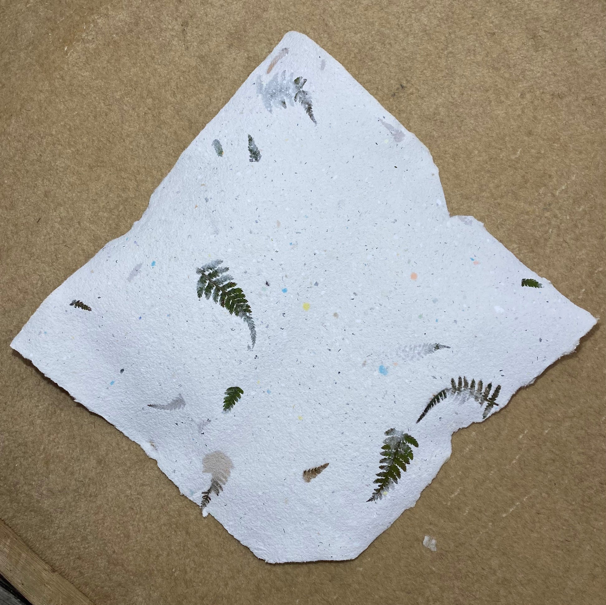 Papier fabriqué à la main de manière artisanale, à partir de papier recyclé localement. Papier recyclé avec ou sans inclusion.