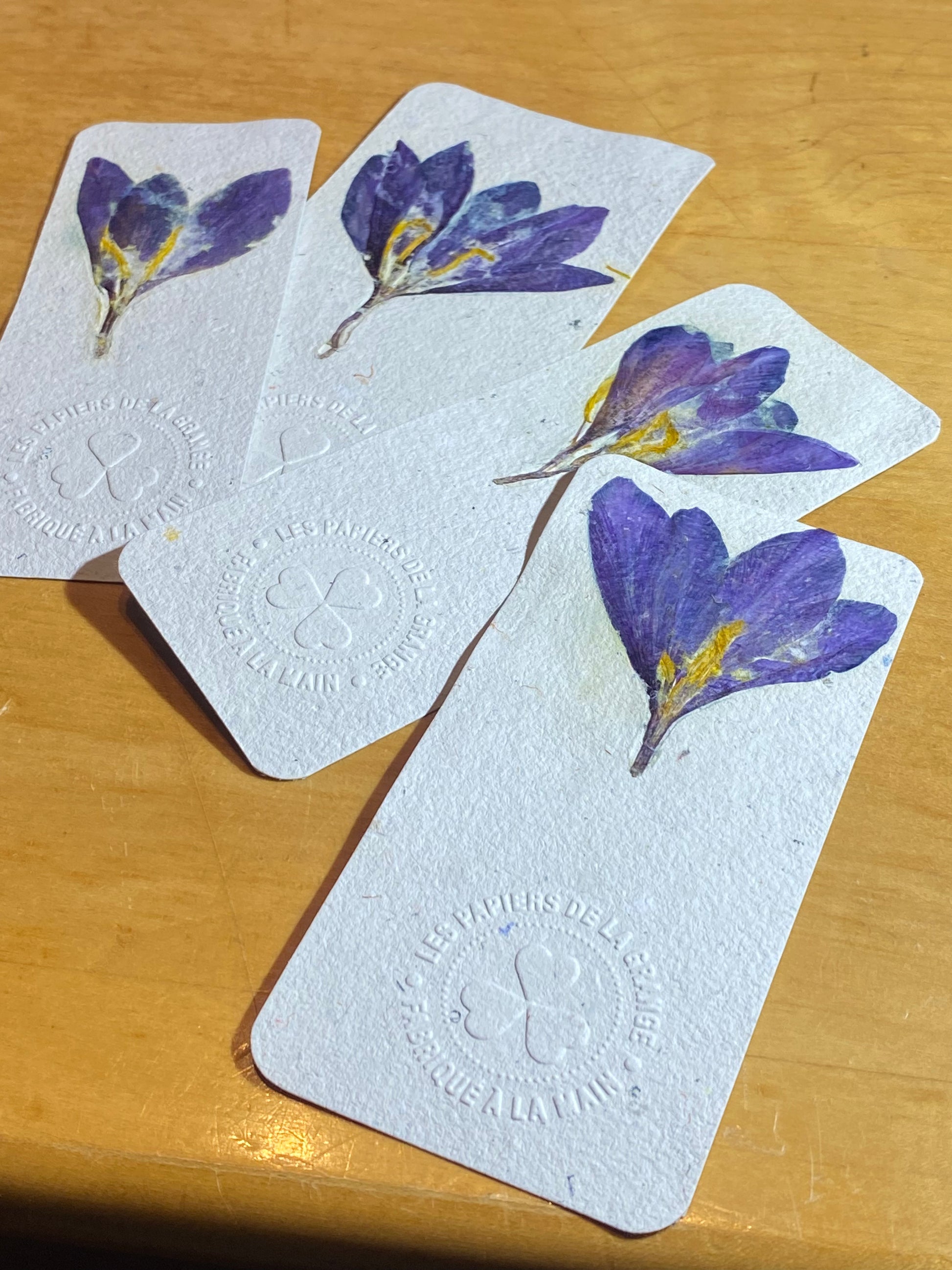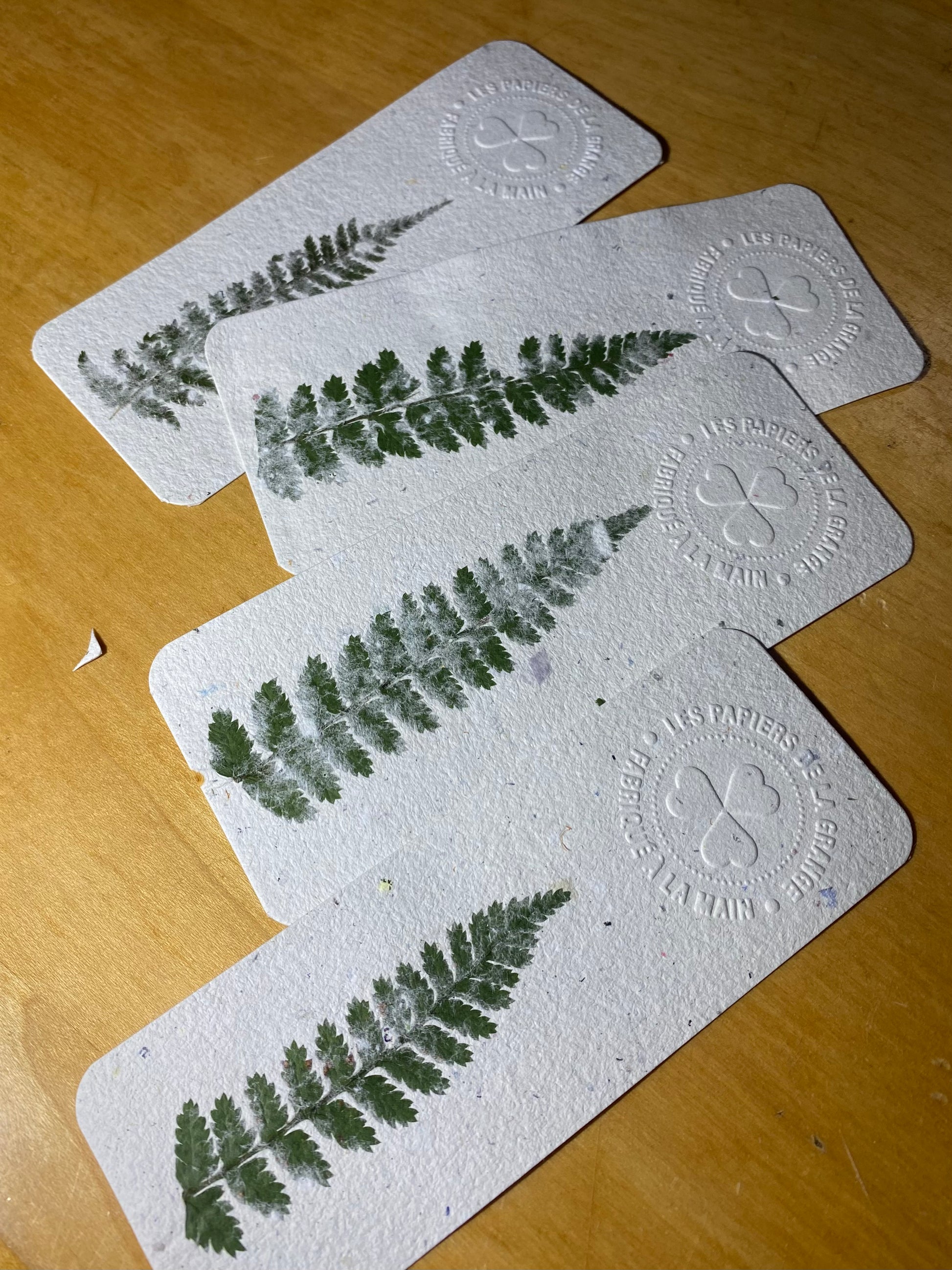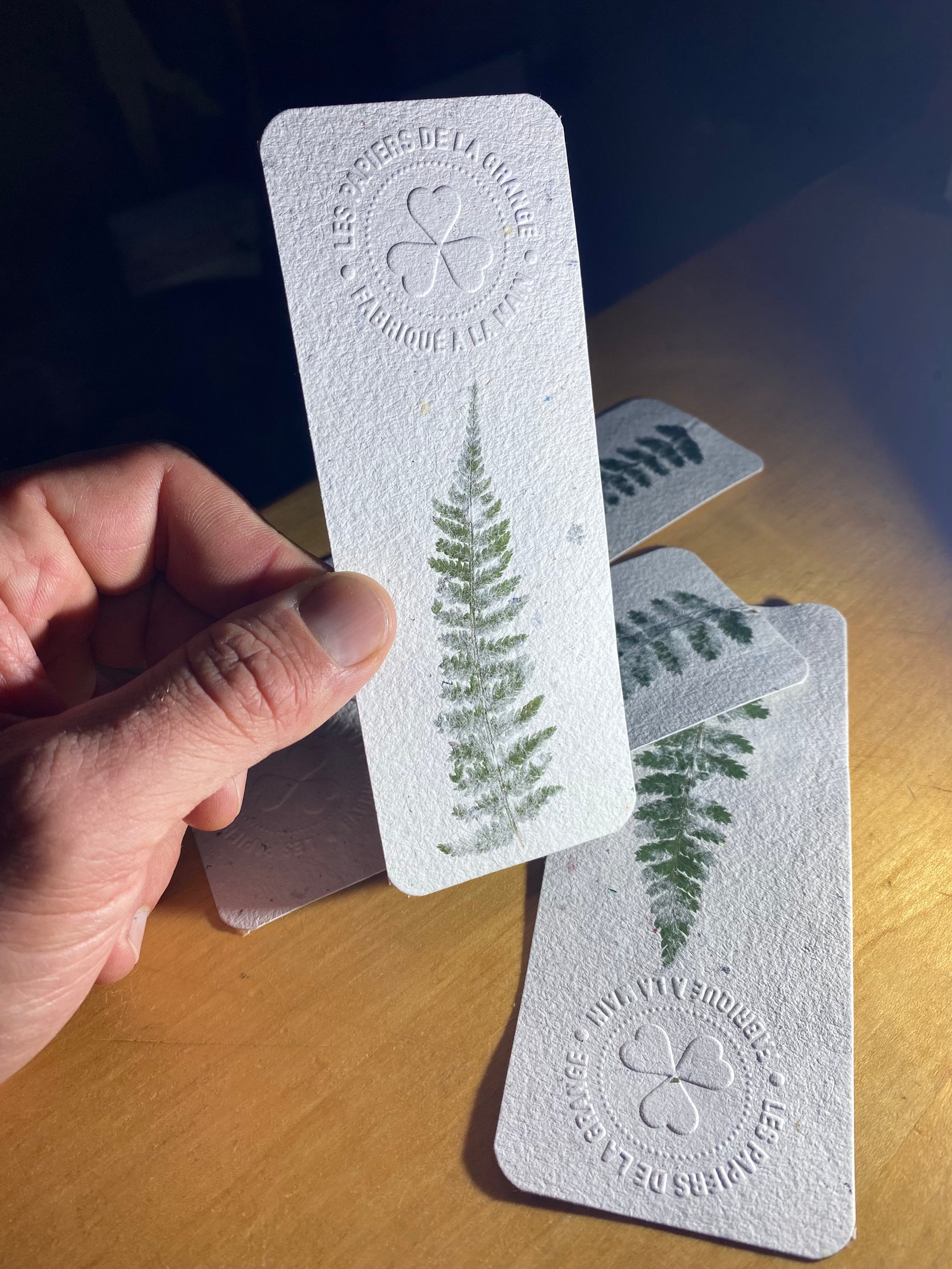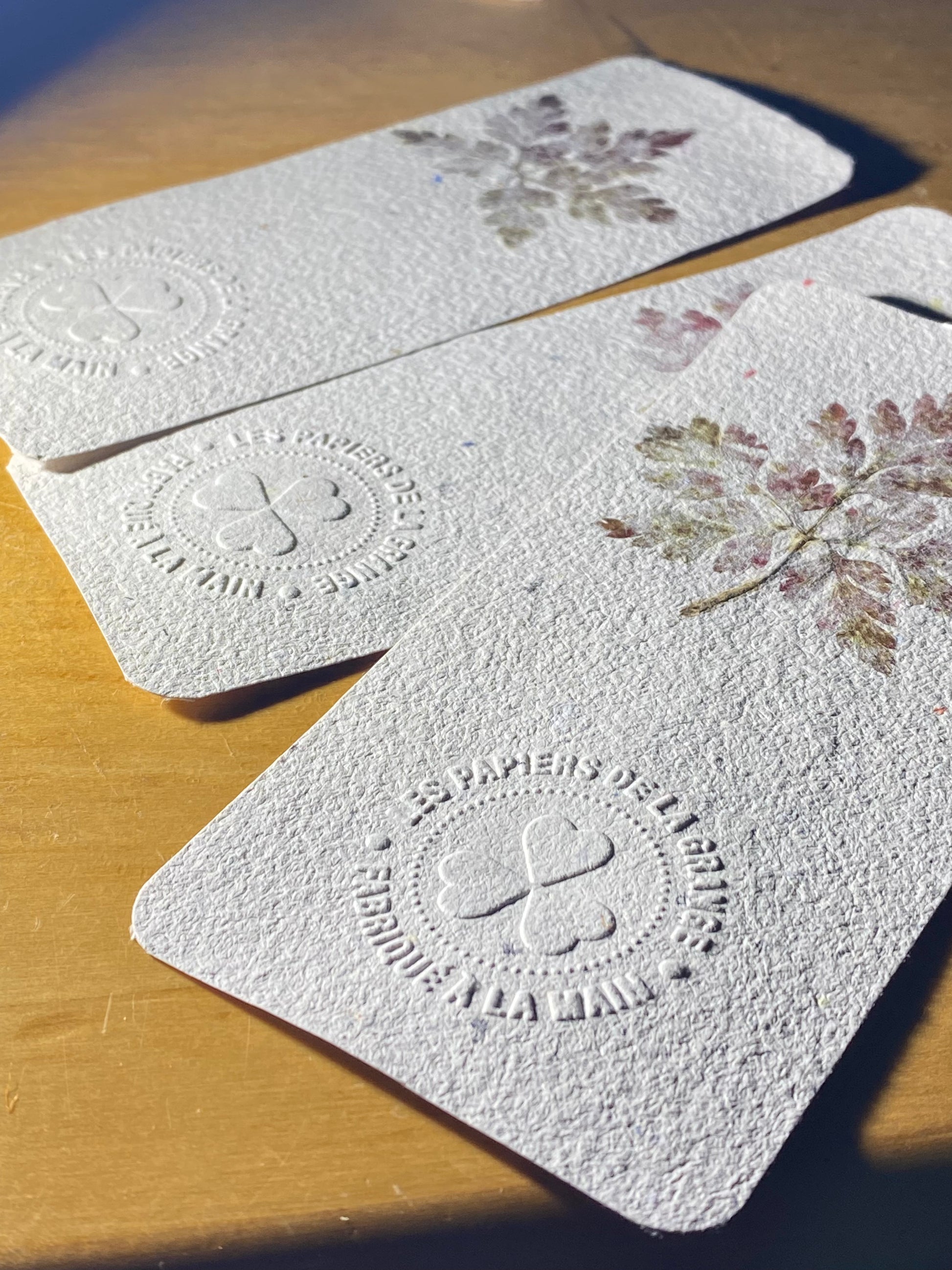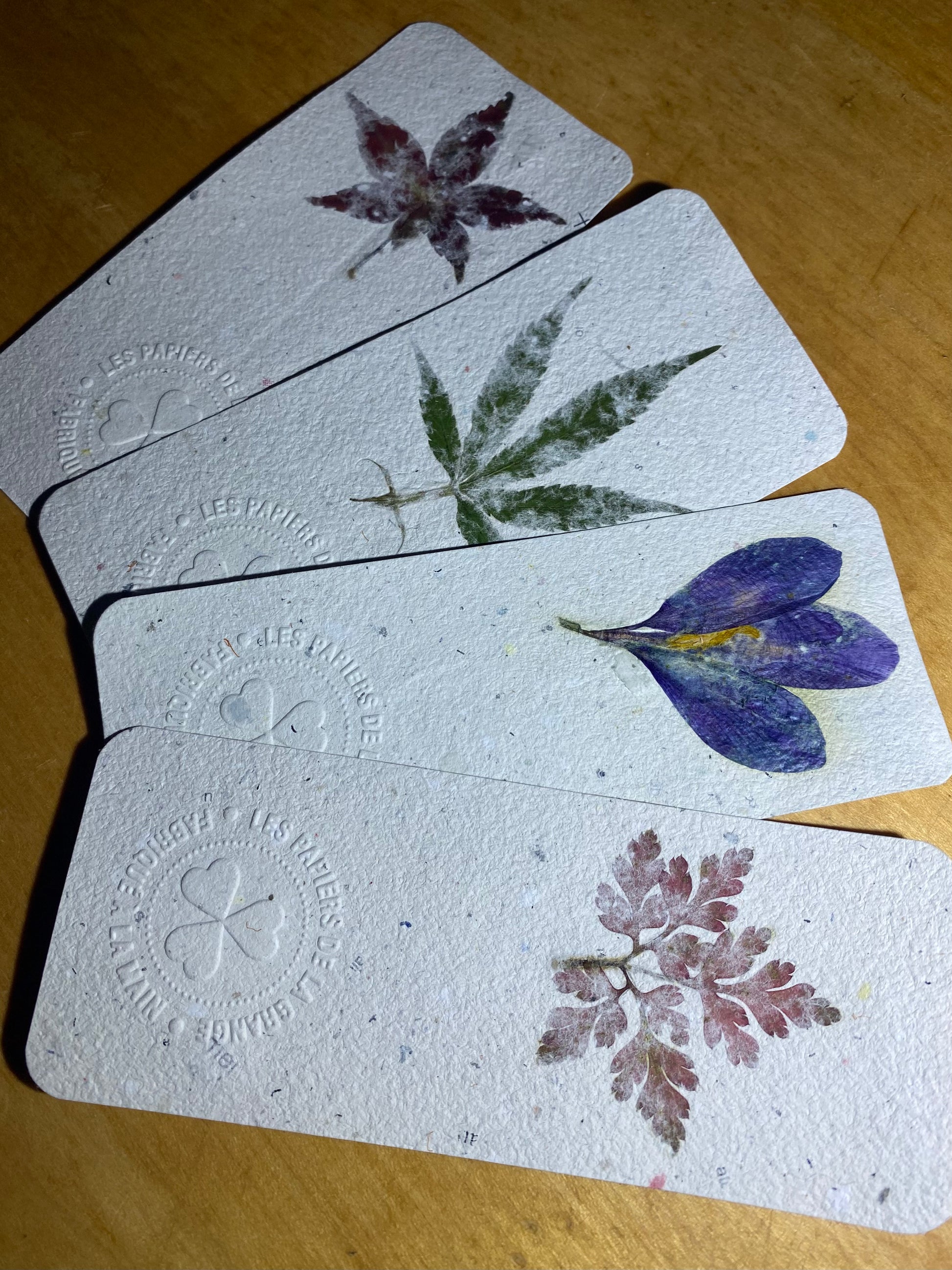 Marque-pages en papier recyclé avec inclusion unique de fleur ou de végétal.