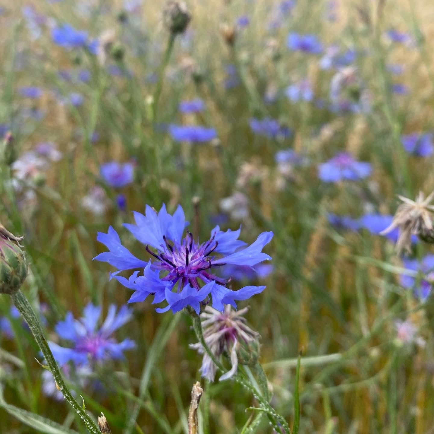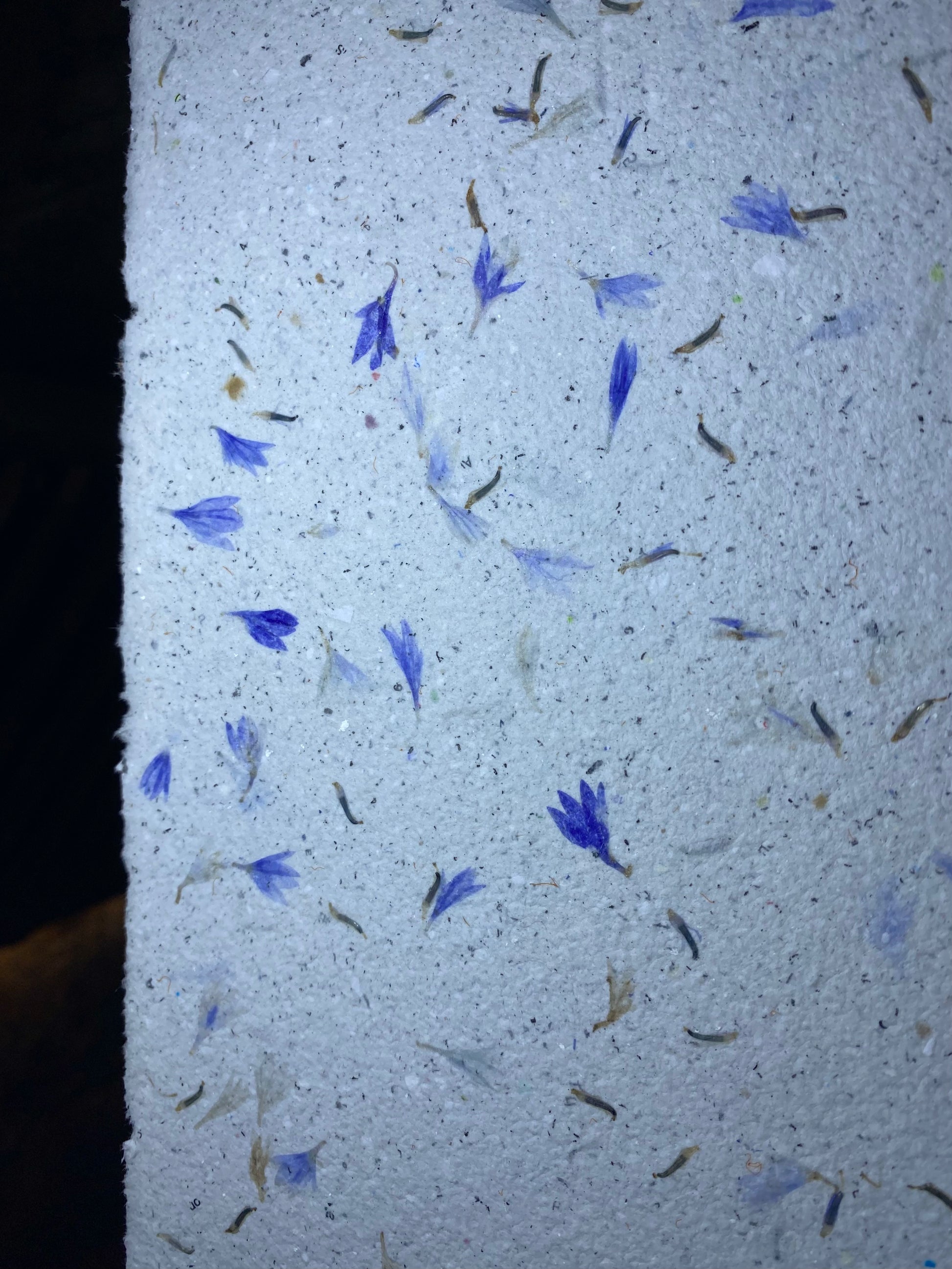 Papier recyclé avec inclusion de pétales de pétales de bleuets.