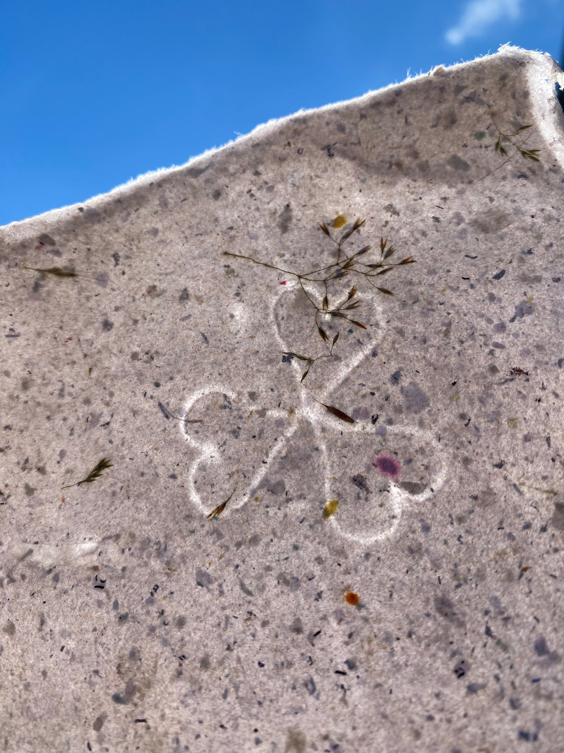 Papier recyclé avec inclusion de pétales de pétales de graminées.
