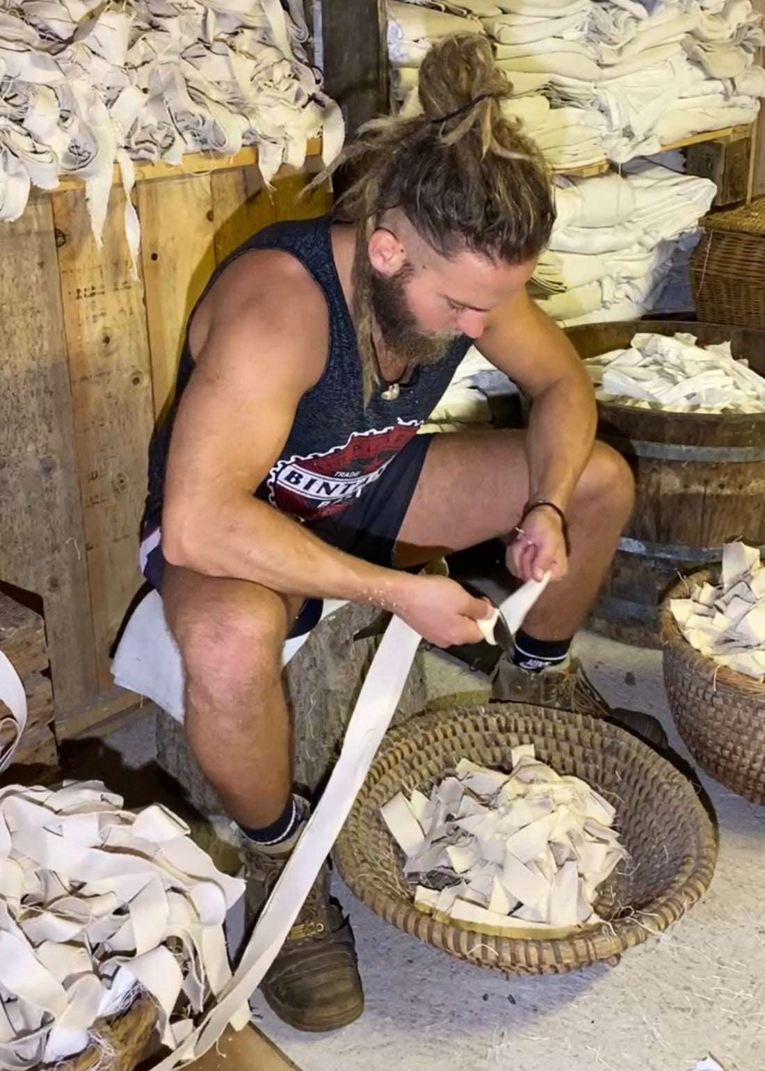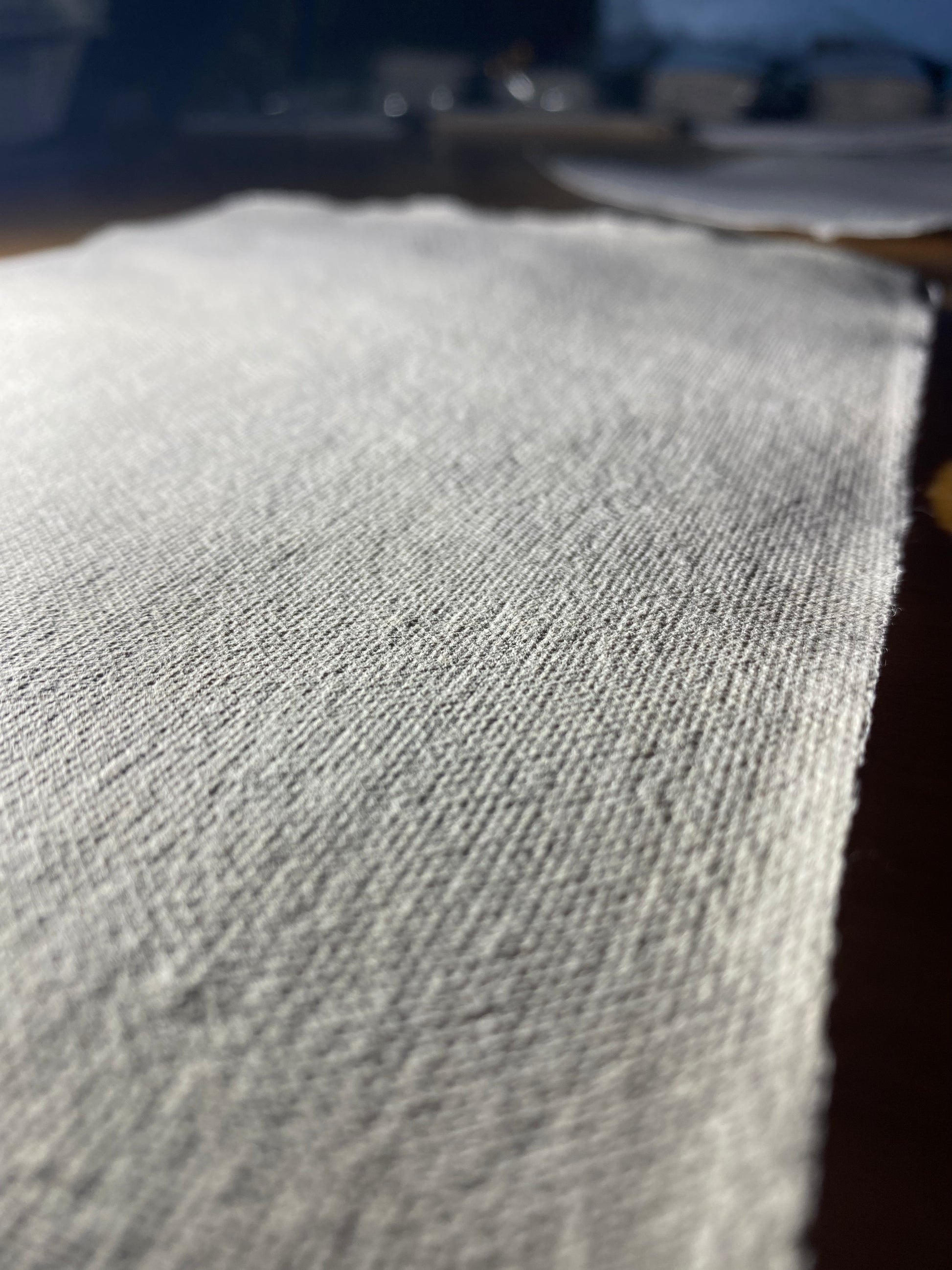 Papier fabriqué à partir de chutes textiles 100% coton (coton brut légèrement écru). Toutes les feuilles de cette production sont embossées avec le filigrane des Papiers de la Grange et l'appellation "pur chiffon". Spécialement conçu pour l'aquarelle.